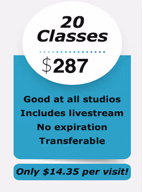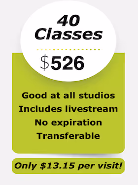 Moving? Transfer any remaining classes to a friend or use them to attend livestream classes from anywhere. You can also exchange remaining classes for access to our On Demand videos.